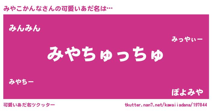 | ヘコむあだ名 | 『みやにー』『みやっ子』『豆乳』 |