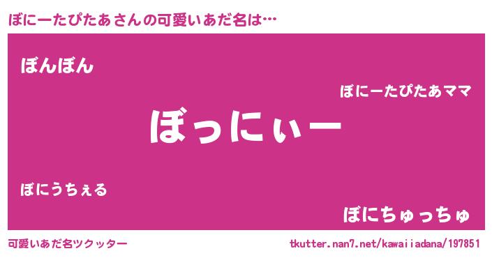 | ポケモン風あだ名 | 『ヒボニータピタア』『ボニチュウ』 |