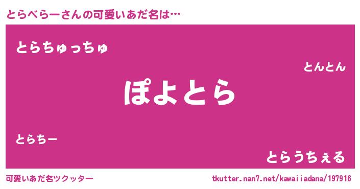 | ヘコむあだ名 | 『とらふぇ~』『酢こんぶ』 |
