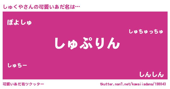 | ヒーロー風カッコイイあだ名 | 『仮面シュダー』『スーパーシュクヤ』 |
