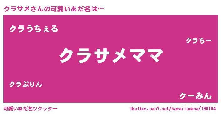 | 意味不明あだ名 | 『永久保存クラサメ』『自称クラサメ』 |
