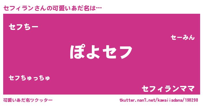 | 意味不明あだ名 | 『住所不定無職セフィラン(59歳)』 |
