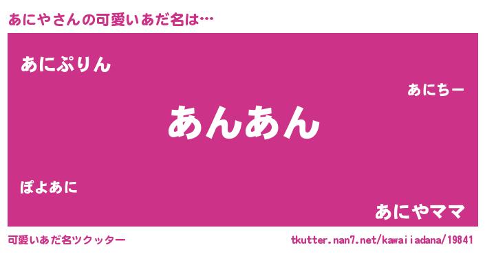 | 2回繰り返すあだ名 | 『あにあに』『わいわい』『ああにに』 |