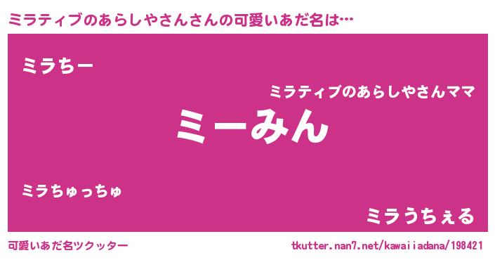 | 恥ずかしいあだ名 | 『ミラっちょ』『ミラちん』 |