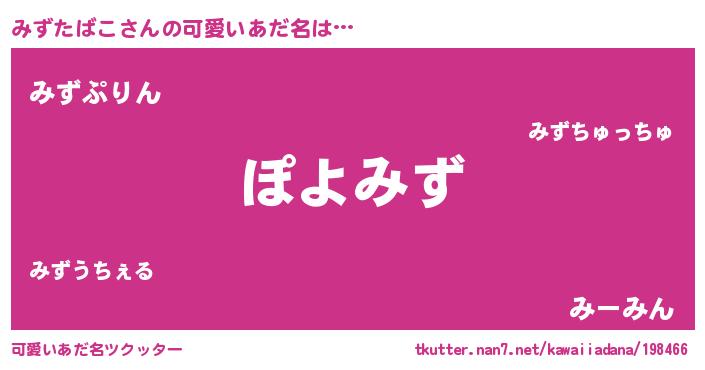 | ヘコむあだ名 | 『みずぷりん』『豆乳』『みずにー』 |