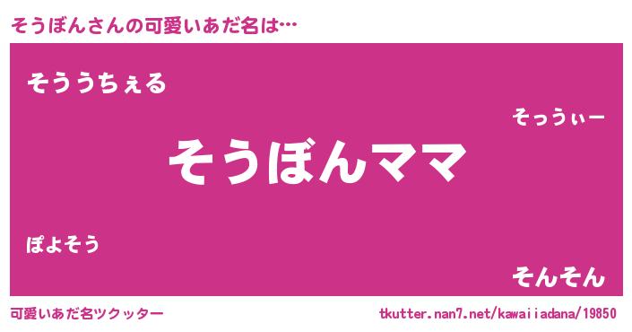 | 意味不明あだ名 | 『永久保存そうぼん』『自称そうぼん』 |