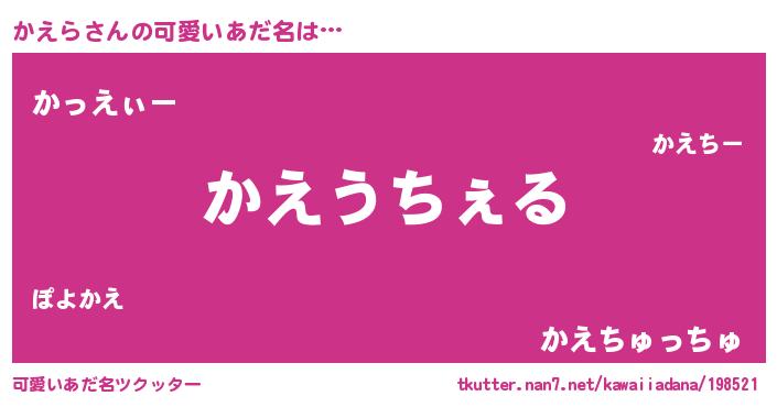 | ヒーロー風カッコイイあだ名 | 『ウルトラ戦士カエラ』『銀牙騎士カエ』 |