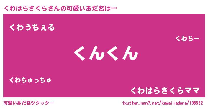 | ヘコむあだ名 | 『くわもー』『くわはらさくら(震え声)』 |