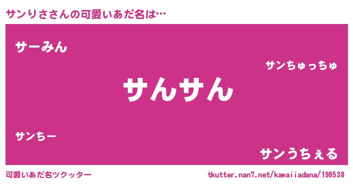 | 意味不明あだ名 | 『ペロリンサンりさ』『自称サンりさ』 |
