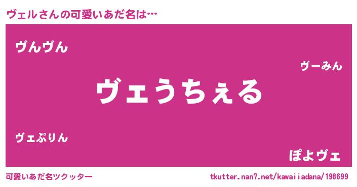 | ヒーロー風カッコイイあだ名 | 『最強戦士ヴェル』『スーパーヴェル』 |