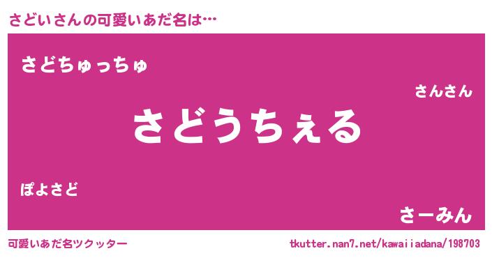 | 男性向けラノベタイトル風あだ名 | 『Re:さどいから始める異世界生活』 |