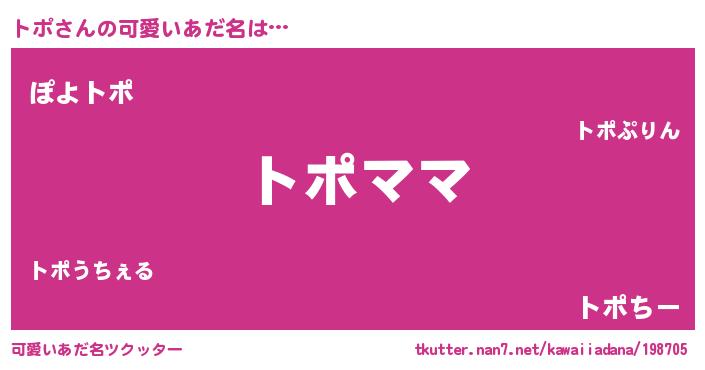 | ポケモン風あだ名 | 『ゼニトポ』『トーポイ』『トポダネ』 |
