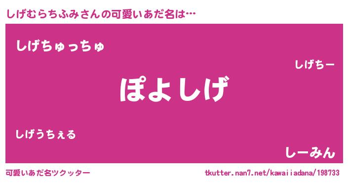 | ヘコむあだ名 | 『豆乳』『しげむらちふみ(笑)』 |