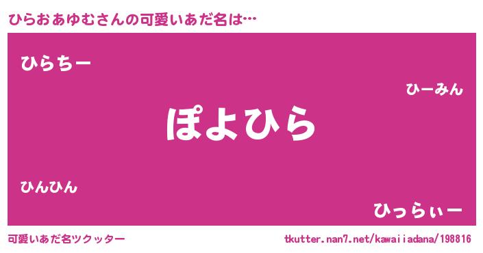 | 男性向けラノベタイトル風あだ名 | 『ひらおあゆむに滅ぼされるだけの簡単なお仕事です』 |