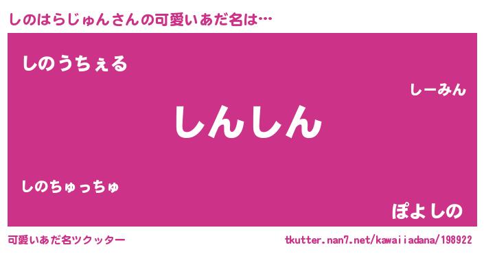 | 恥ずかしいあだ名 | 『プリティーしのはらじゅん』『しのちん』 |