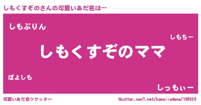 | ヘコむあだ名 | 『しもくすぞの(苦笑)』『しもを』 |