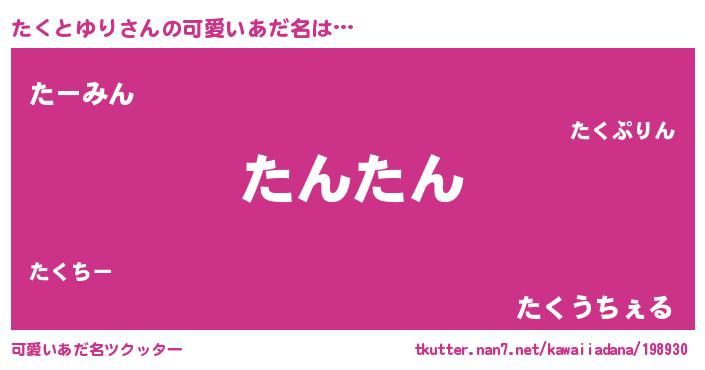 | 恥ずかしいあだ名 | 『プリティーたくとゆり』『たくっちょ』 |