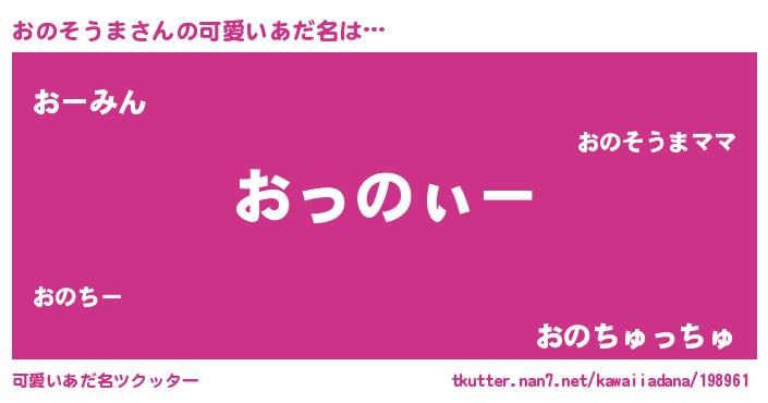 | 男性向けラノベタイトル風あだ名 | 『おのそうまの嫁は女の子じゃないと思った?』 |