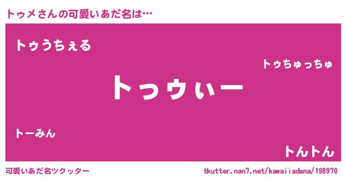 | 意味不明あだ名 | 『とにかく怪しいトゥメ』『自称トゥメ』 |