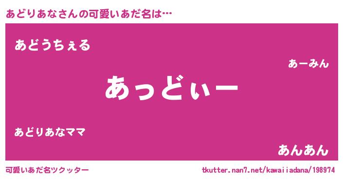 | 男性向けラノベタイトル風あだ名 | 『あどりあなの嫁は女の子じゃないと思った?』 |