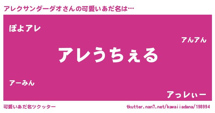 | 男性向けラノベタイトル風あだ名 | 『Re:アレクサンダーダオから始める異世界生活』 |