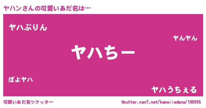 | 女子向けラノベタイトル風あだ名 | 『ヤハンの雑貨屋さん』『闇のヤハン』 |