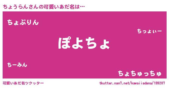 | ヒーロー風カッコイイあだ名 | 『仮面チョダー』『慈愛の使者ちょうらん』 |