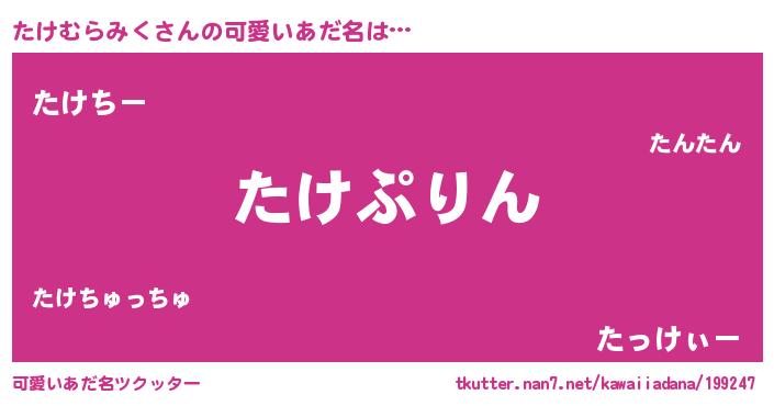 | ヘコむあだ名 | 『つくし』『たけっぺ』『たけもー』 |