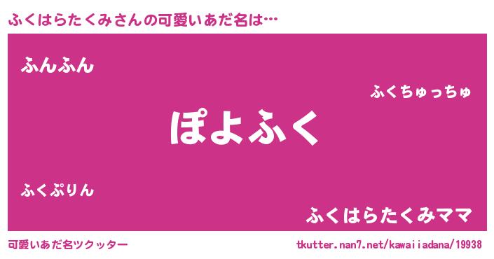 | 恥ずかしいあだ名 | 『プリティーふくはらたくみ』『ふくちん』 |