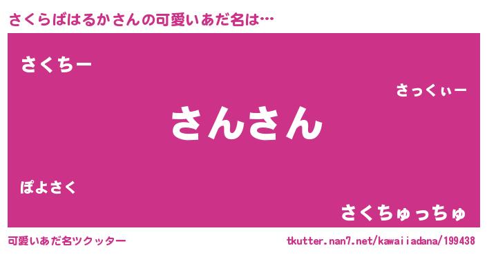 | 恥ずかしいあだ名 | 『プリティーさくらばはるか』『さくちん』 |