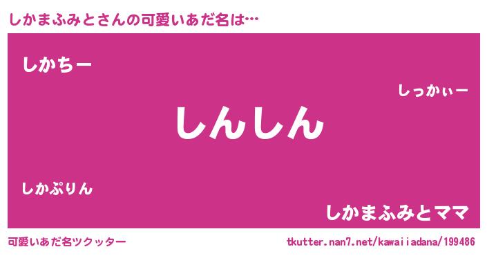 | 恥ずかしいあだ名 | 『プリティーしかまふみと』『しかっちょ』 |