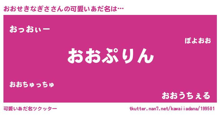 | 男性向けラノベタイトル風あだ名 | 『転生したらおおせきなぎさだった件』 |