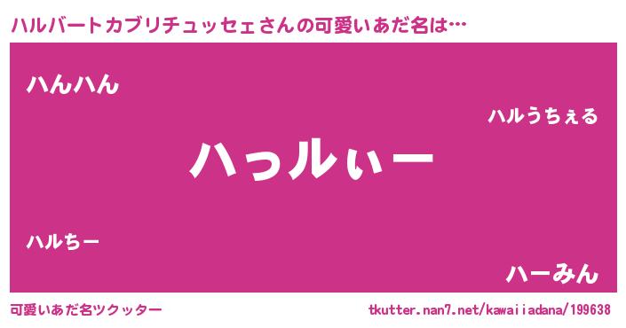| 女子向けラノベタイトル風あだ名 | 『ハルバートカブリチュッセェは平凡を望む』 |