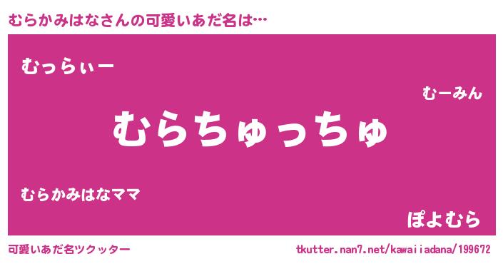 | ヘコむあだ名 | 『むらっぺ』『むらかみはな(小並感)』 |