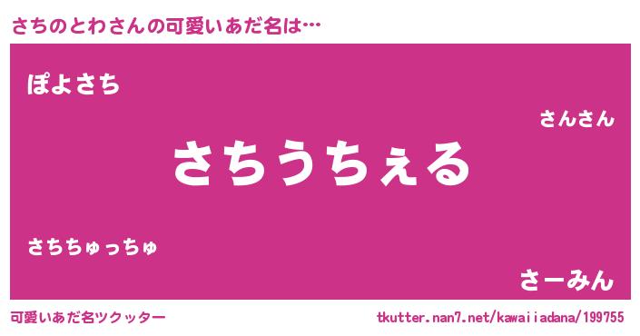 | ヒーロー風カッコイイあだ名 | 『最強戦士サチノトワ』『仮面サチダー』 |