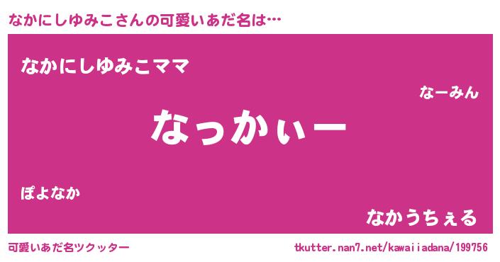 | ポケモン風あだ名 | 『ヒナカニシユミコ』『ゼニナカ』 |
