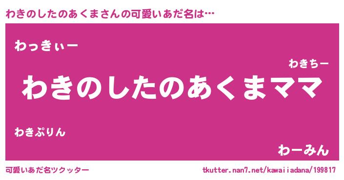 | ヘコむあだ名 | 『わきのしたのあくま(爆)』『わきっぺ』 |