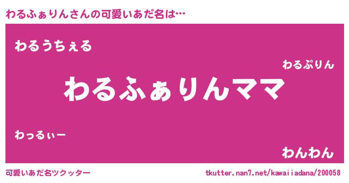 | 意味不明あだ名 | 『永久保存わるふぁりん』 |