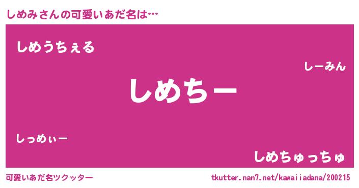 | 意味不明あだ名 | 『しめみフォーエバー』『自称しめみ』 |