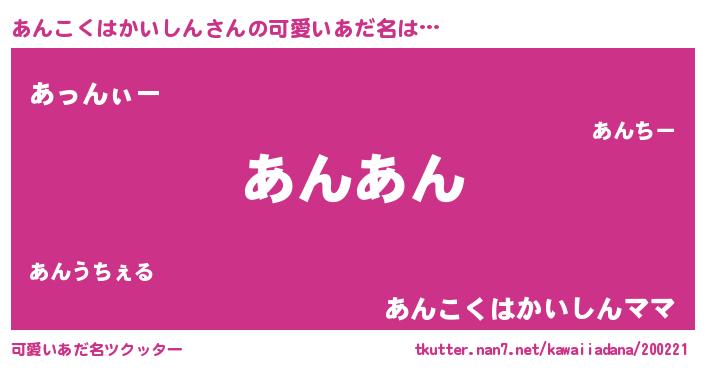 | 2回繰り返すあだ名 | 『あんあん』『うねうね』『ごろごろ』 |