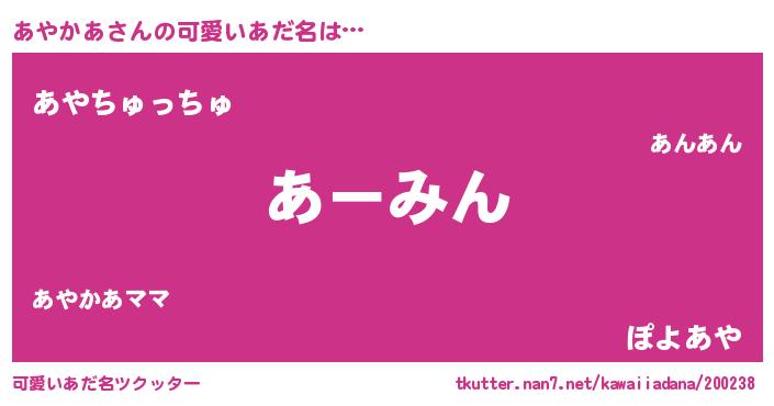 | 欧米人風あだ名 | 『あやかあ・ステッグマイヤー』 |
