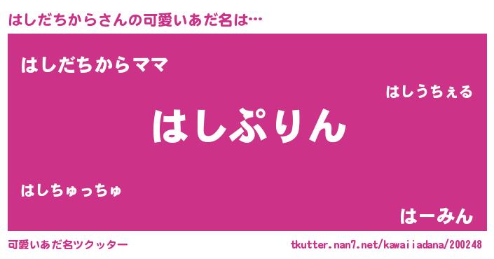 | 恥ずかしいあだ名 | 『はしちん』『ハシダチカラデラックス』 |
