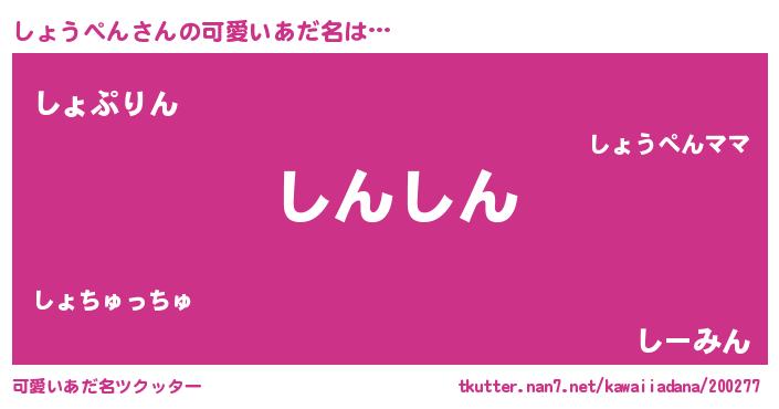 | 意味不明あだ名 | 『ペロリンしょうぺん』『自称しょうぺん』 |