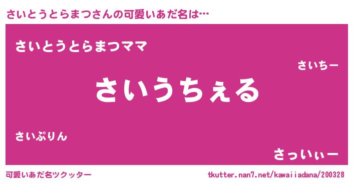 | 意味不明あだ名 | 『自称さいとうとらまつ』 |