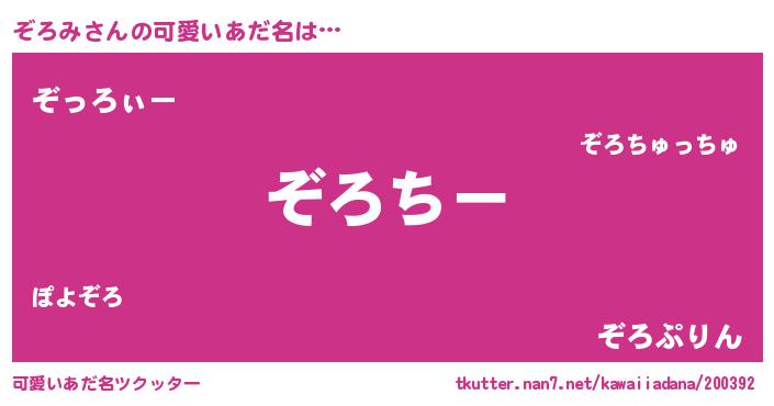 | 意味不明あだ名 | 『ぞろみフォーエバー』 |