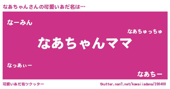 | 男性向けラノベタイトル風あだ名 | 『なあちゃんという概念が存在しない退屈な世界 』 |