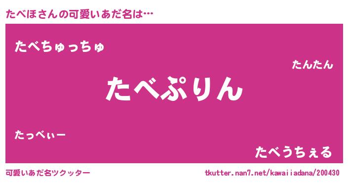 | 男性向けラノベタイトル風あだ名 | 『タベホスレイヤー』『たべほの憂鬱』 |