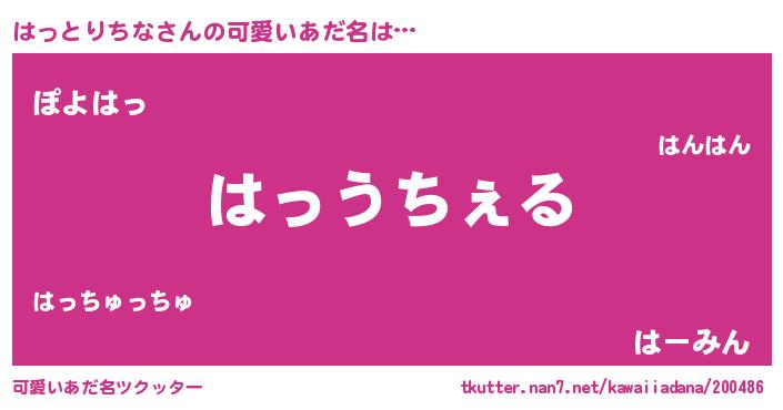 | 男性向けラノベタイトル風あだ名 | 『Re:はっとりちなから始める異世界生活』 |