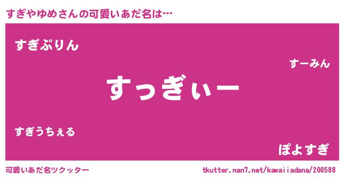 | ポケモン風あだ名 | 『ヒスギヤユメ』『スギゴンZ』 |