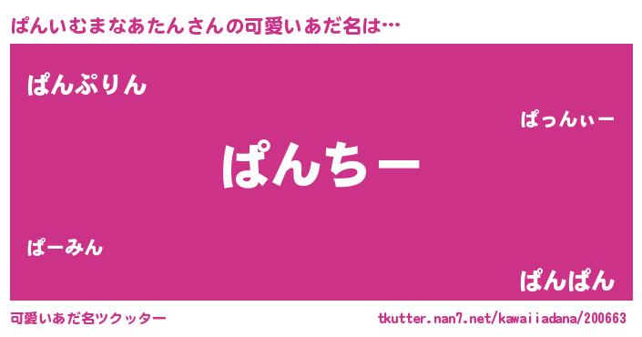 | 欧米人風あだ名 | 『ぱんいむまなあたんクリステル』 |